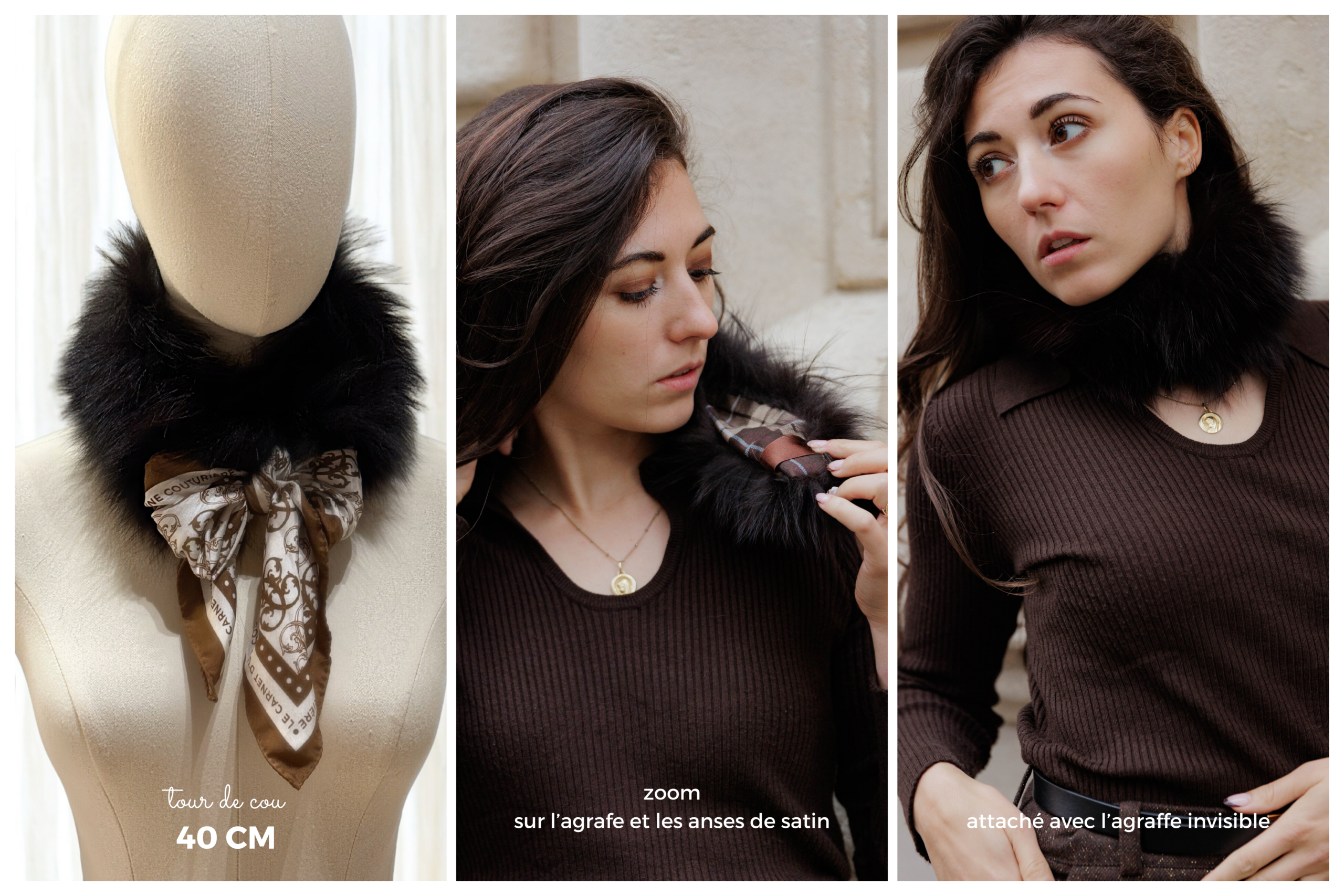 - des agrafes invisibles en bout de fourrure pour attacher le col au plus près du cou