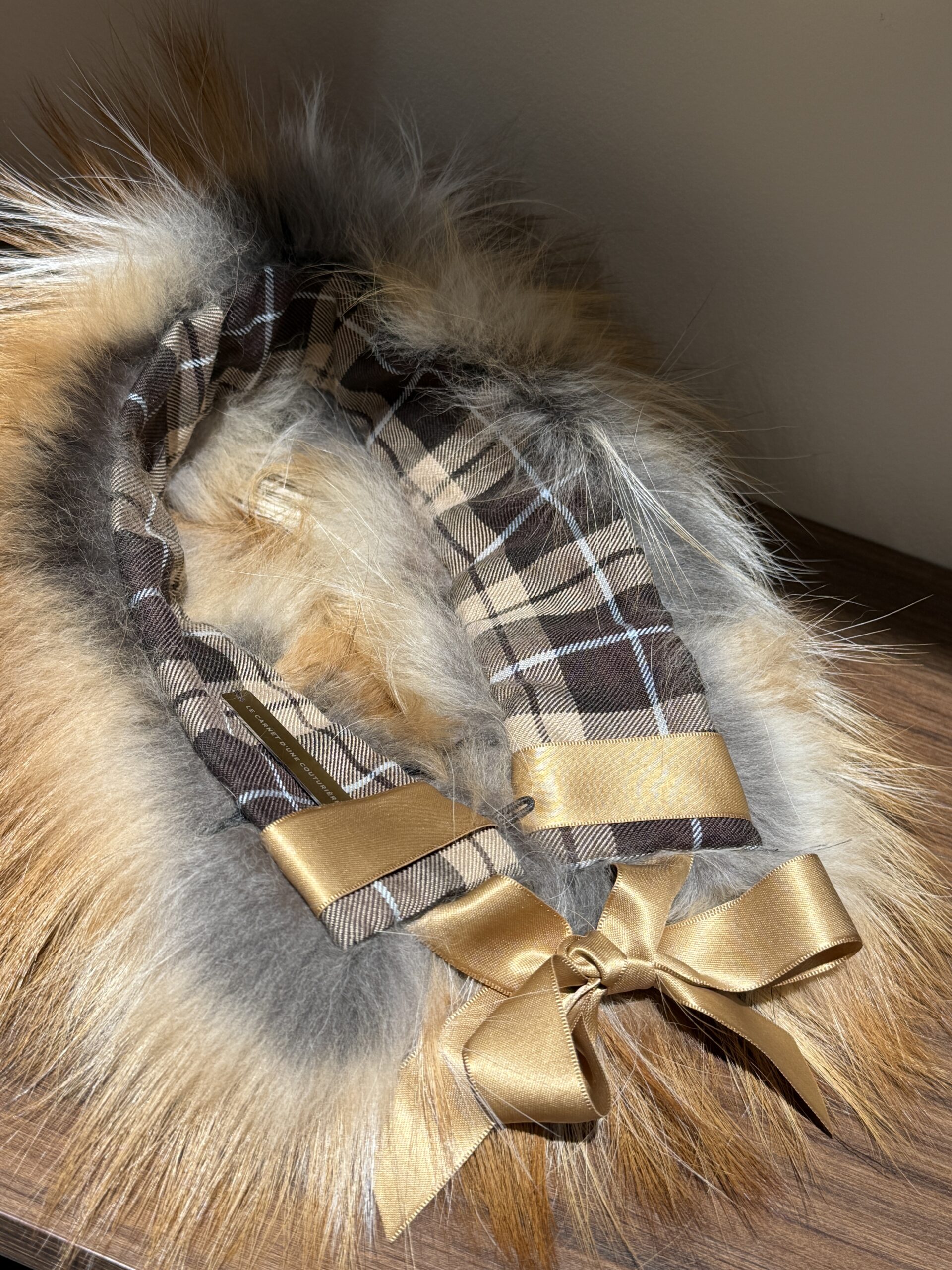 Le col est monté sur une doublure en coton, motif tartan iconique. Une attache invisible vous permet d’accrocher votre col en toute sécurité comme une agrafe. Un ruban en satin vous permet de nouer votre col en fourrure de manière élégante. Je vous propose deux tailles de col en fourrure, le petit col en 50cm qui se porte près du cou et le grand col de 70cm qui se porte en V plus long. Chaque col est différent au vu de sa provenance animale, il peut y avoir de légères différences entre les photos et votre col au niveau des couleurs.