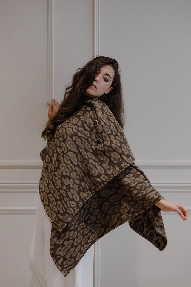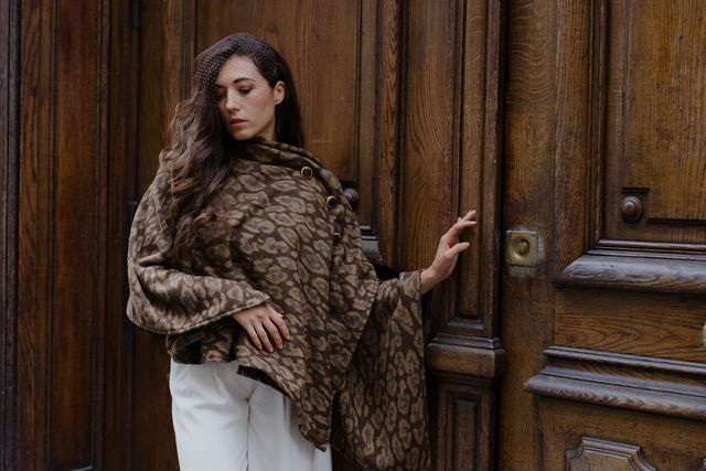 La cape drapée, d’un lainage léopard camel pour draper vos après-midi réconfortante ou bien vos escapades citadines . En extérieur la cape drapée se porte par dessus votre manteau ou veste d’hiver. La cape drapée se drape à votre convenance, s’adapte à toutes les morphologie et vous enveloppera de douceur. Nonchalamment posé sur vos épaules ou bien enveloppée dedans pour avoir très chaud, la cape drapée est déjà notre nouveauté préférée, et vous ?